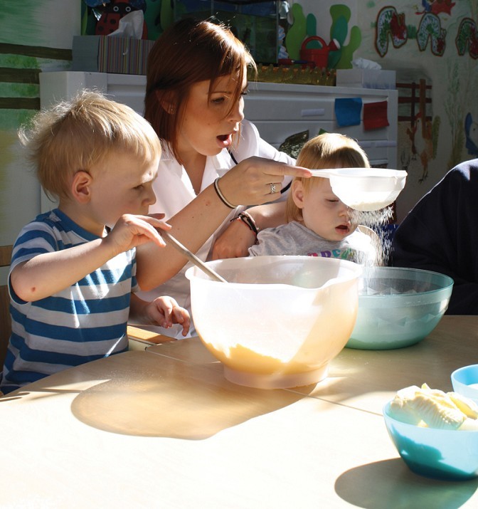 All babies and children have the opportunity to participate in baking and cooking activities as part of their learning experience. A wide range of recipes are used in the nursery and children have the opportunity to: