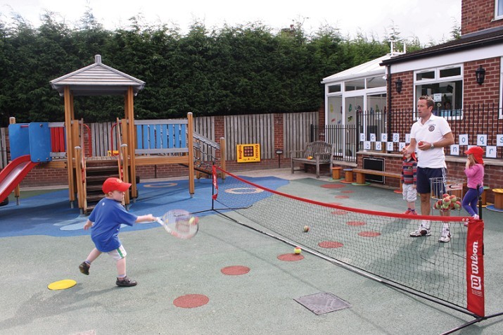 Whatever the weather - the children at both the Nurseries are given lots of opportunities to explore and play in our fantastic, richly resourced colourful outdoor areas to stimulate and challenge children further. The Outdoor areas at both nurseries are also used for Short Tennis.